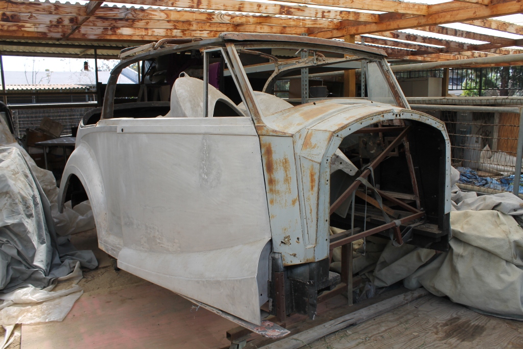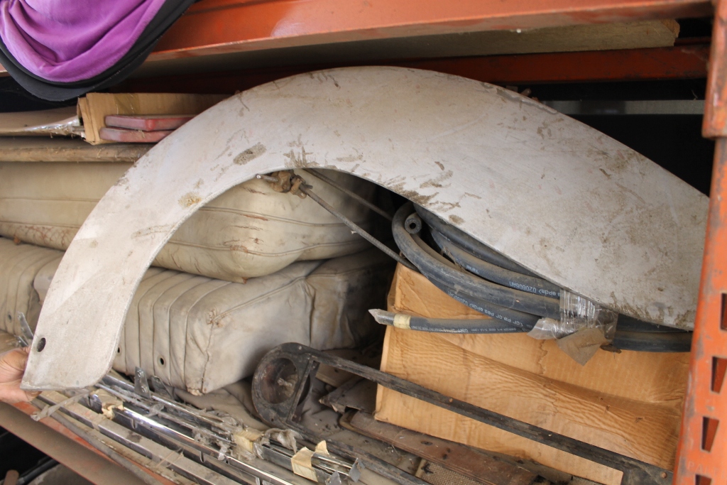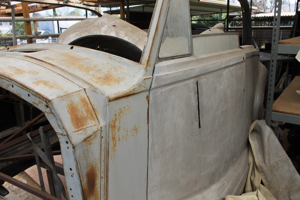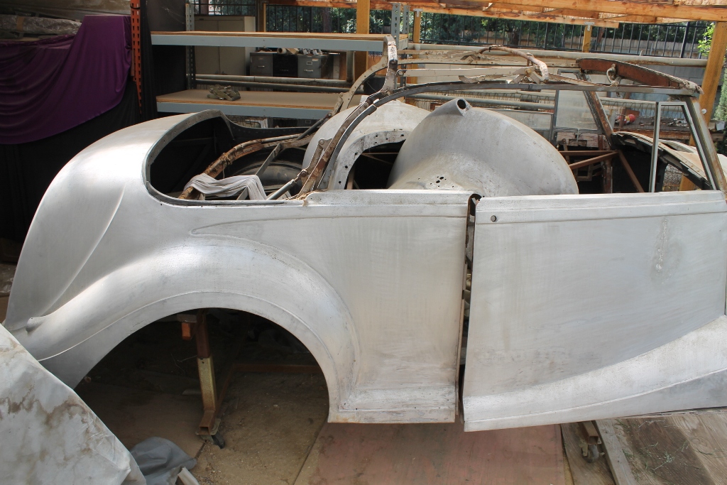 This car is a very nearly complete, and a very historically important car. The chassis work is almost all done, as you’ll see below. The body parts have been kept together, all major items and almost all of the minor ones are accounted for. We couldn’t find one headlamp, and one fenderskirt. There might be some other minor things missing, but overall, it’s a Rolls Convertible in builder kit form! Experienced hobbyists will look at these photos and realize that the restoration has a significant headstart with the completed chassis, and that the bodywork would come together with the application of some restoration talent, money and time!