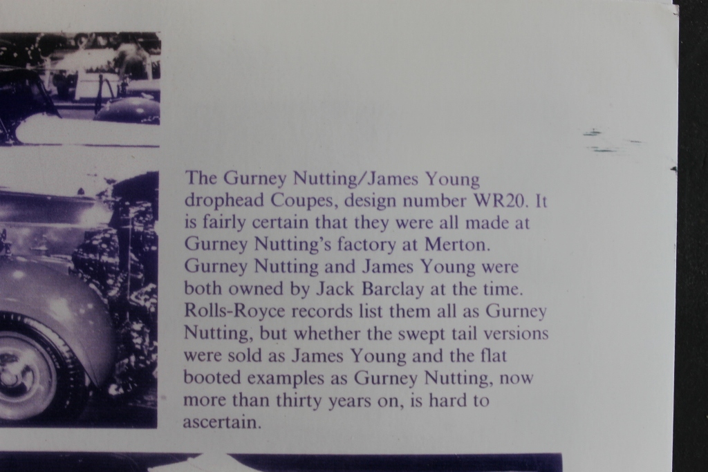 Background on the Drop Head coupe design. Note the WR20 design number is the Gurney Nutting design number, not the chassis number!