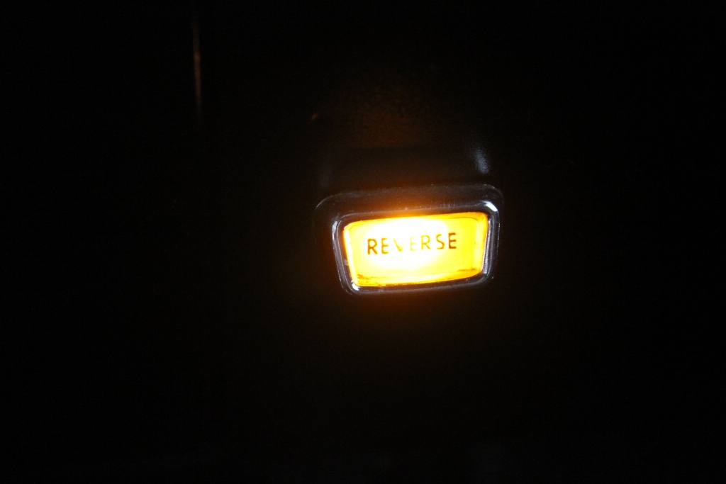 And here’s the Reverse gear warning light, obviously only installed on the 4 speed cars. This car is definitely a factory 4 speed car, with trim tag D21, and all of the reverse gear lockout mechanism still intact and functional! You have to put it in reverse and depress the clutch to start the car.
