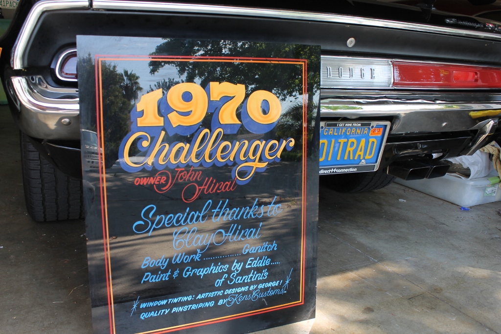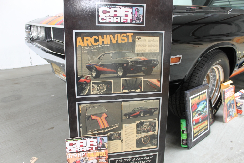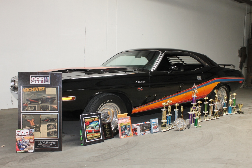 Wow! Look at all those Trophies! We start with a real, genuine, 383 4 Speed Challenger, a car that was so cool, so well done that it was featured on the cover of the June, 1983 CAR CRAFT magazine cover. It was campaigned and shown in the southern California area back in the 1980’s, and I remember seeing it at some of the car gatherings when I was a bit younger, driving MY ’70 Dodge Challenger, and wishing my car looked as good as this one! In 2007, the guy I bought it from found it in storage, still owned by John Hirai, who customized it in the 80’s. The car wouldn’t pass smog check, so it sat in the garage for 25 years, thankfully wonderfully preserved!
