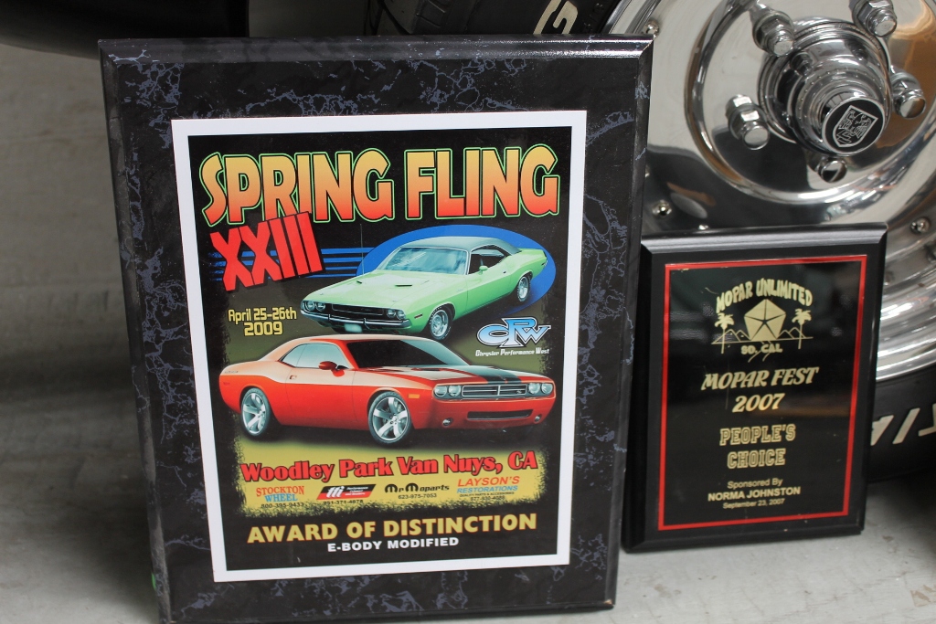 Here’s my favorite trophy on this car, the E body Modified “Award of Distinction at the Spring Fling, which is a major Mopar show in California, which regularly sees 400 car show fields.