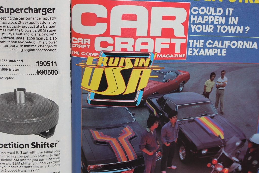 And another shot on the “alternate cover” which wound up being the lead photo for an article about how the cops were cracking down on cruise nights. That guy standing in front of the car is John Hirai, who built it!